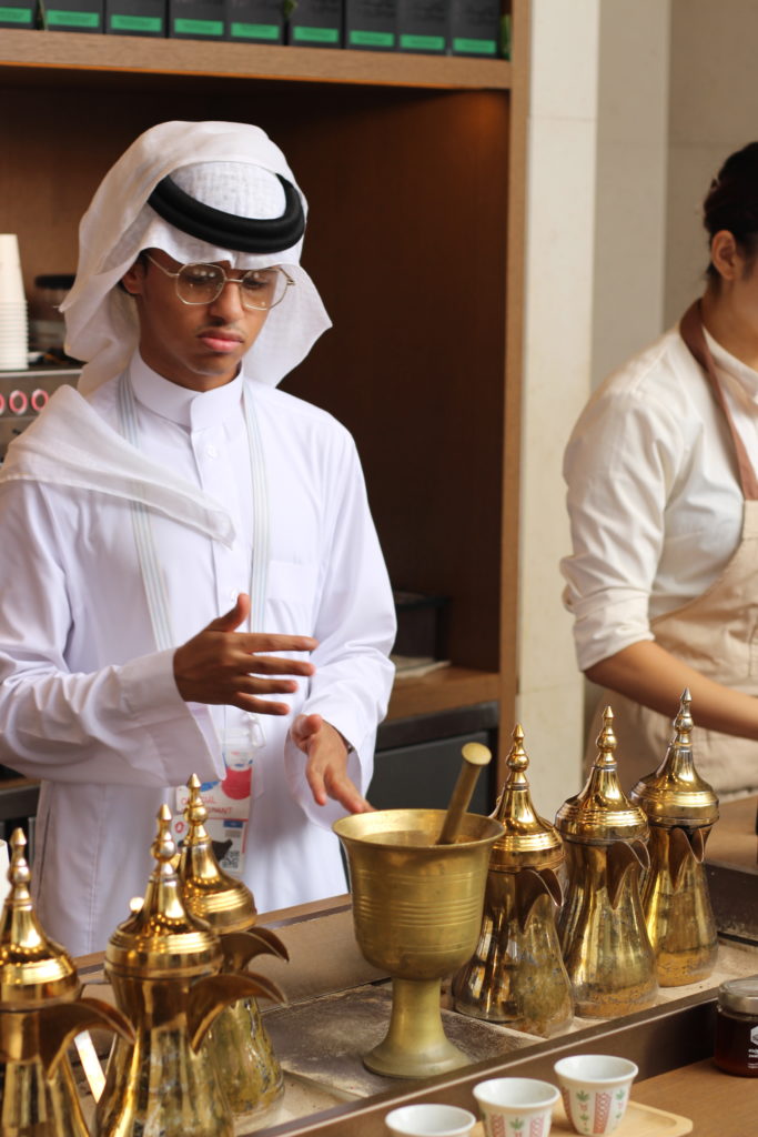 あまりのすごさに思わずカフェの列に並んでしまい一杯700円のサウジコーヒーを購入