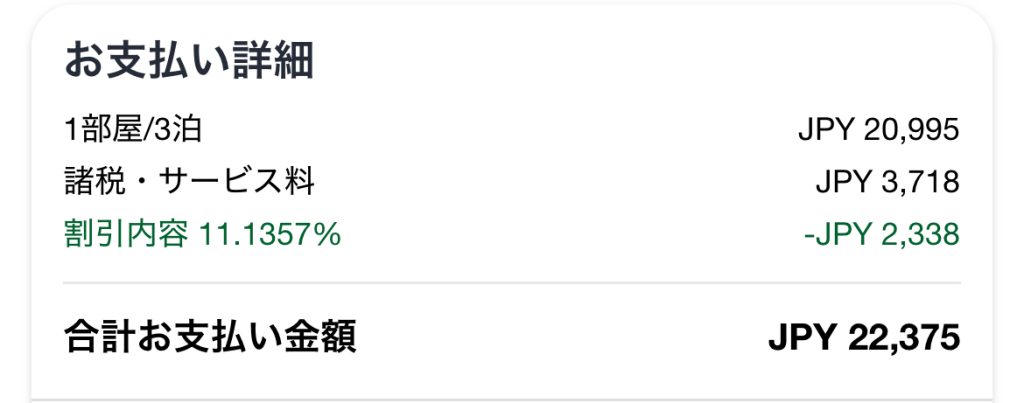 三泊で一人11000円くらいでしたね