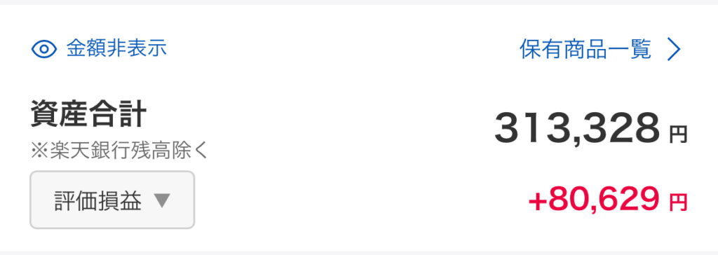 ・投資元本(積み立てた総額):232699円(楽天ポイントで数百円購入した)